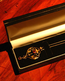 9カラット・ゴールド&ガーネット、ヴィクトリアン・ネックレス。アールヌーヴォーなデザインです。英国では大陸より一足早くアート&クラフツというムーブメントでオーガニックな物が流行りました。これはその当時(19世紀後半)のオリジナルです。