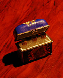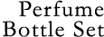 年代不明。手描きでデザインされたとても小さなボトルセットです。